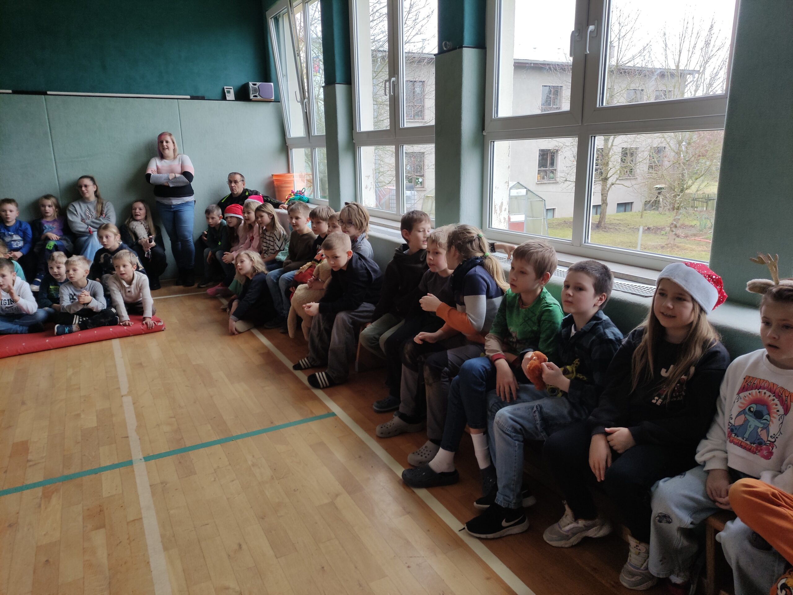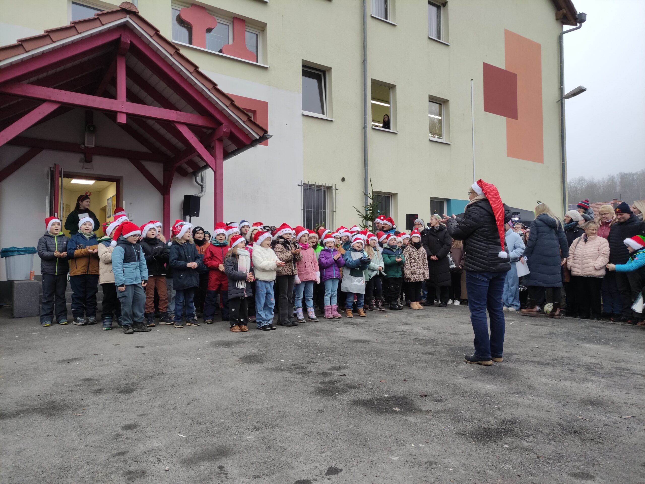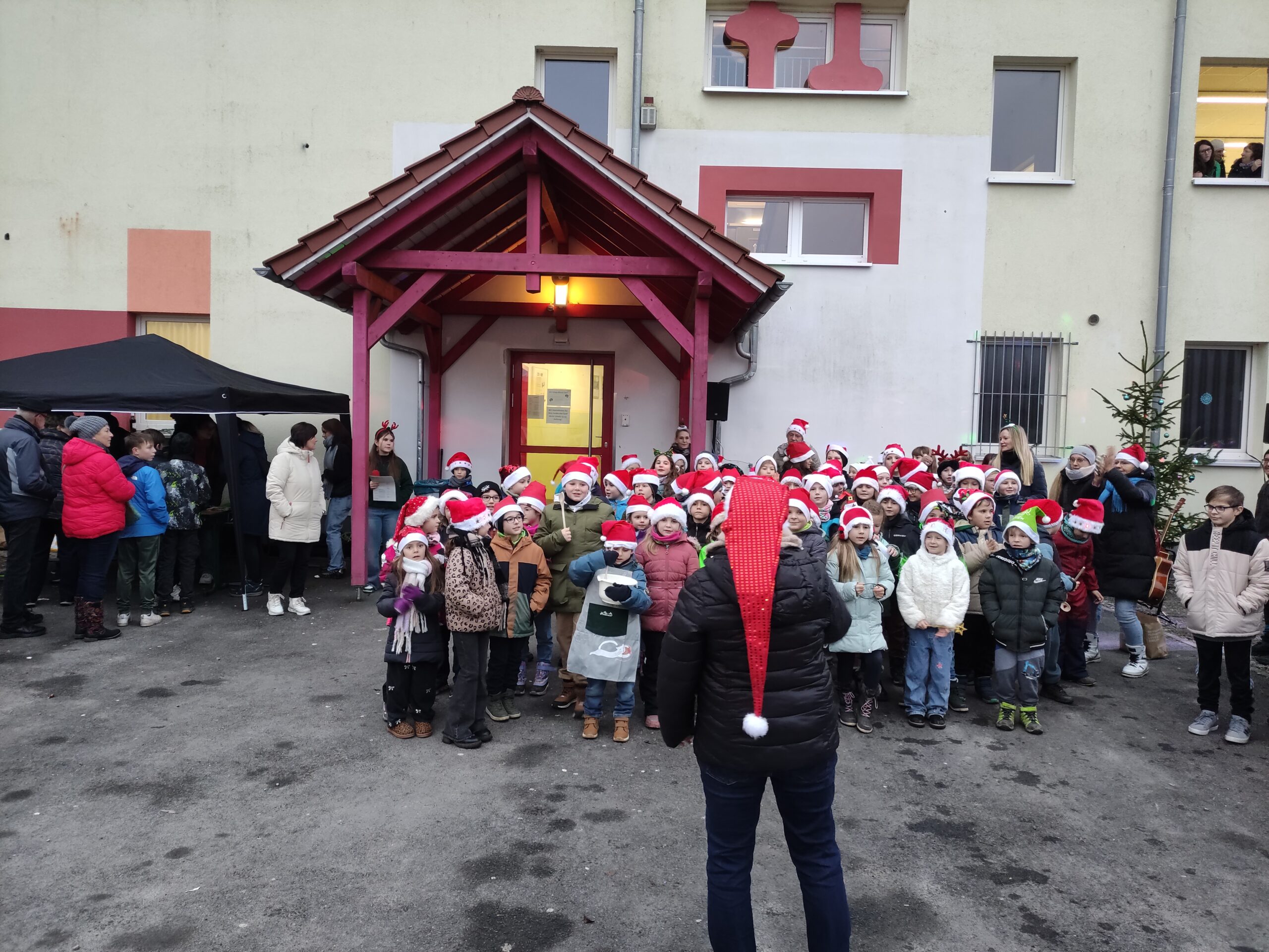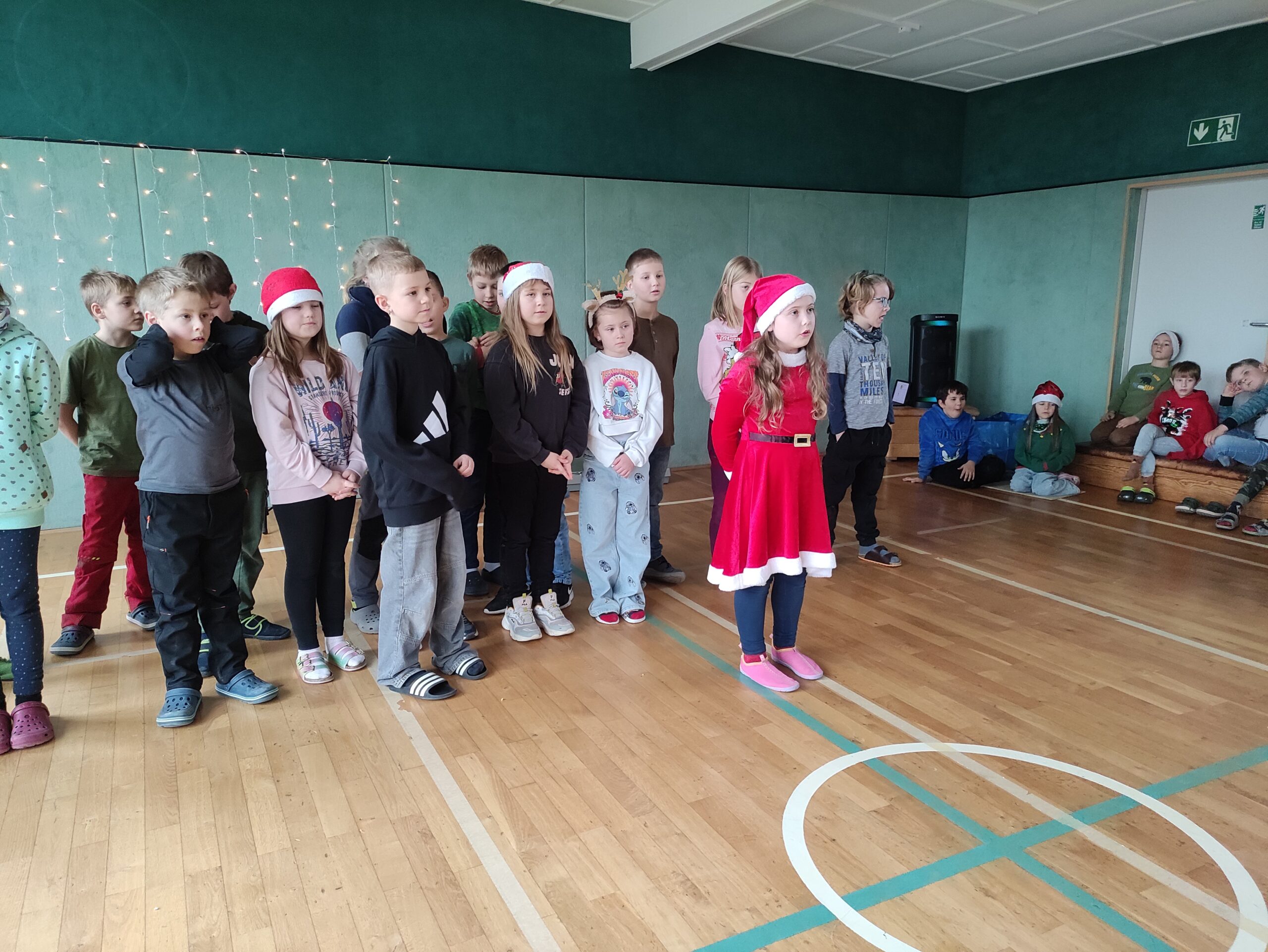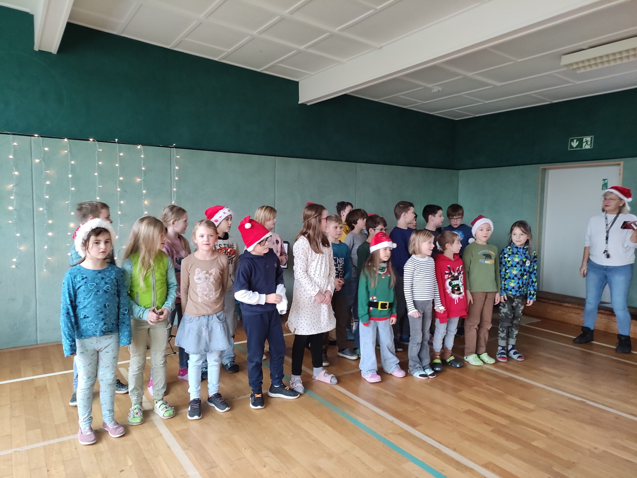 Die Klasse 1 und 2 singen Weihnachtslieder.