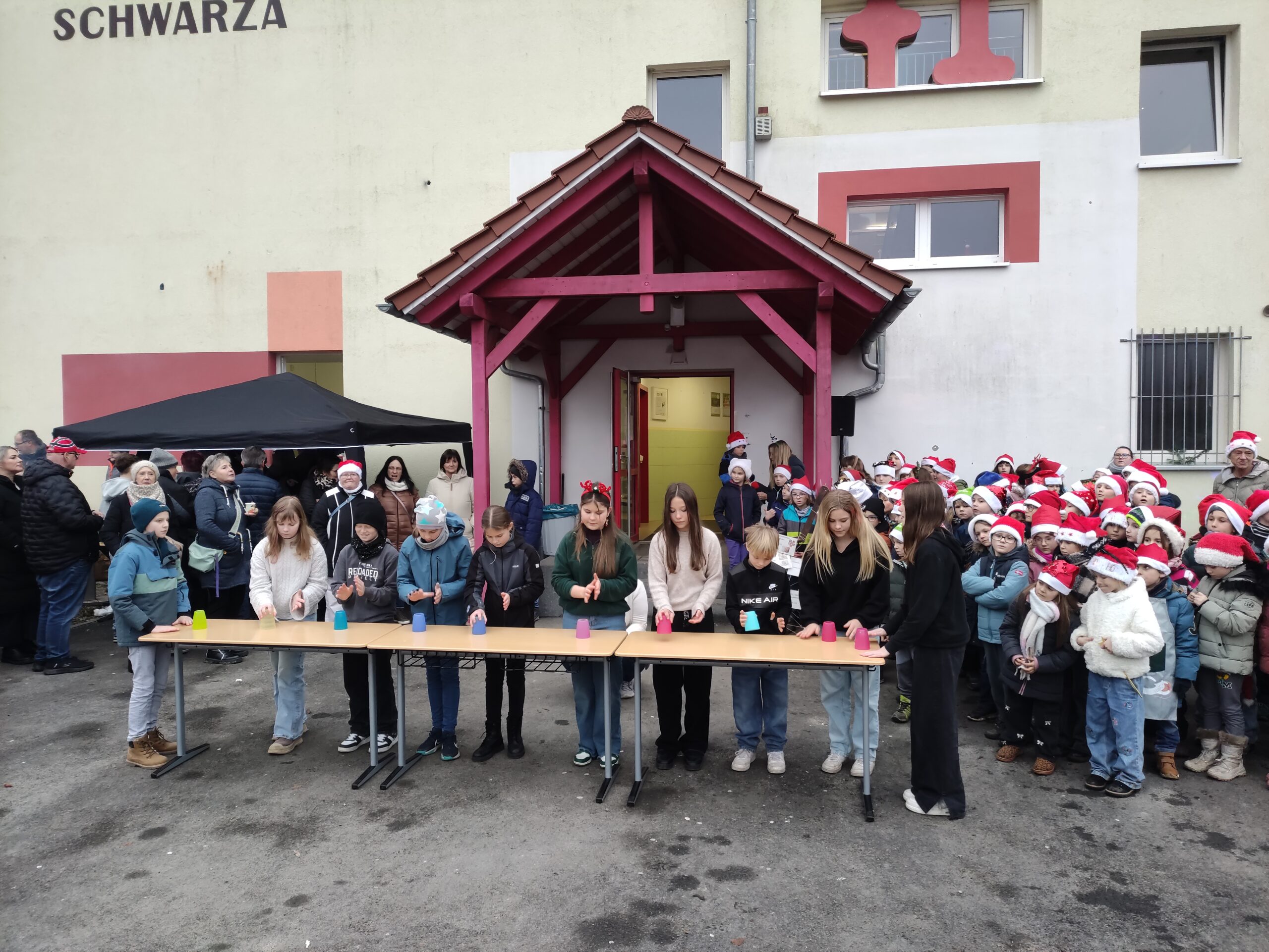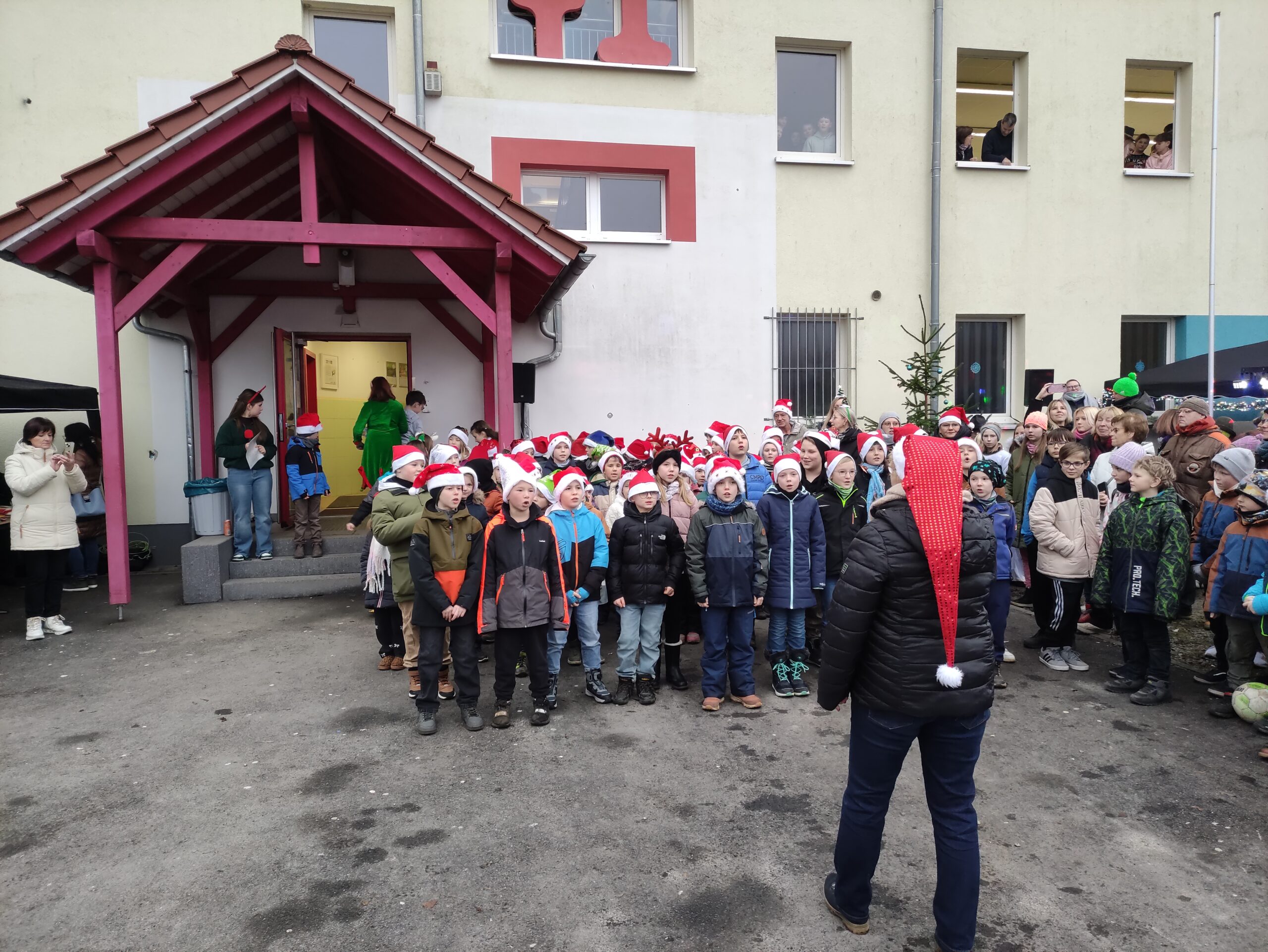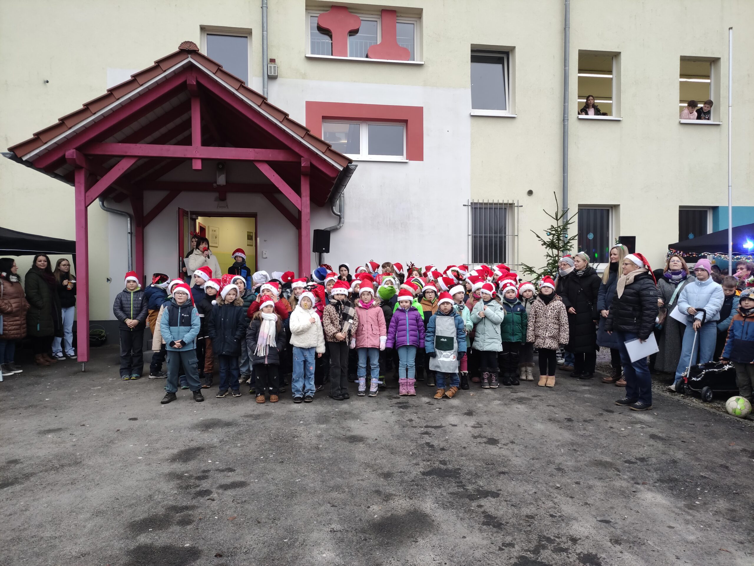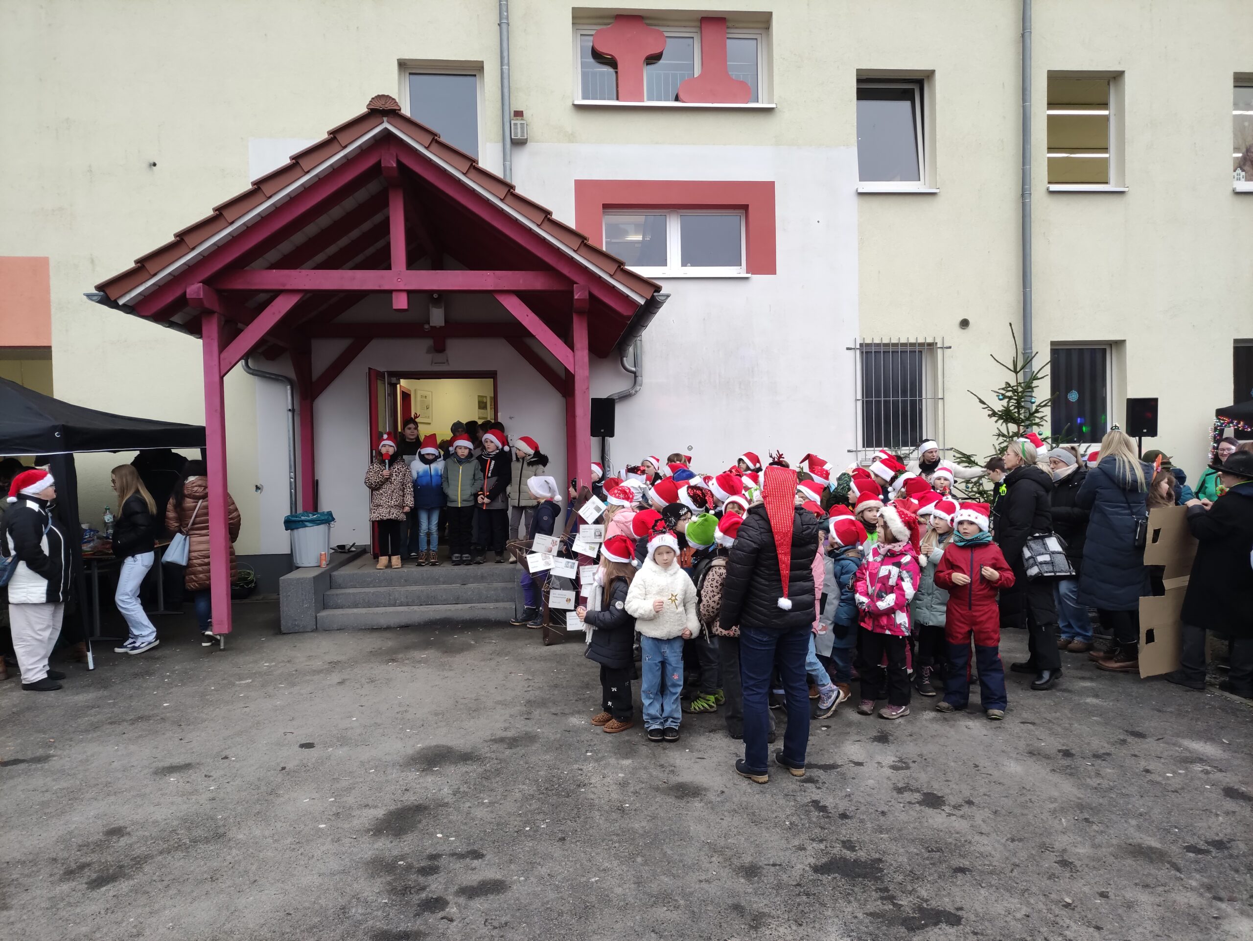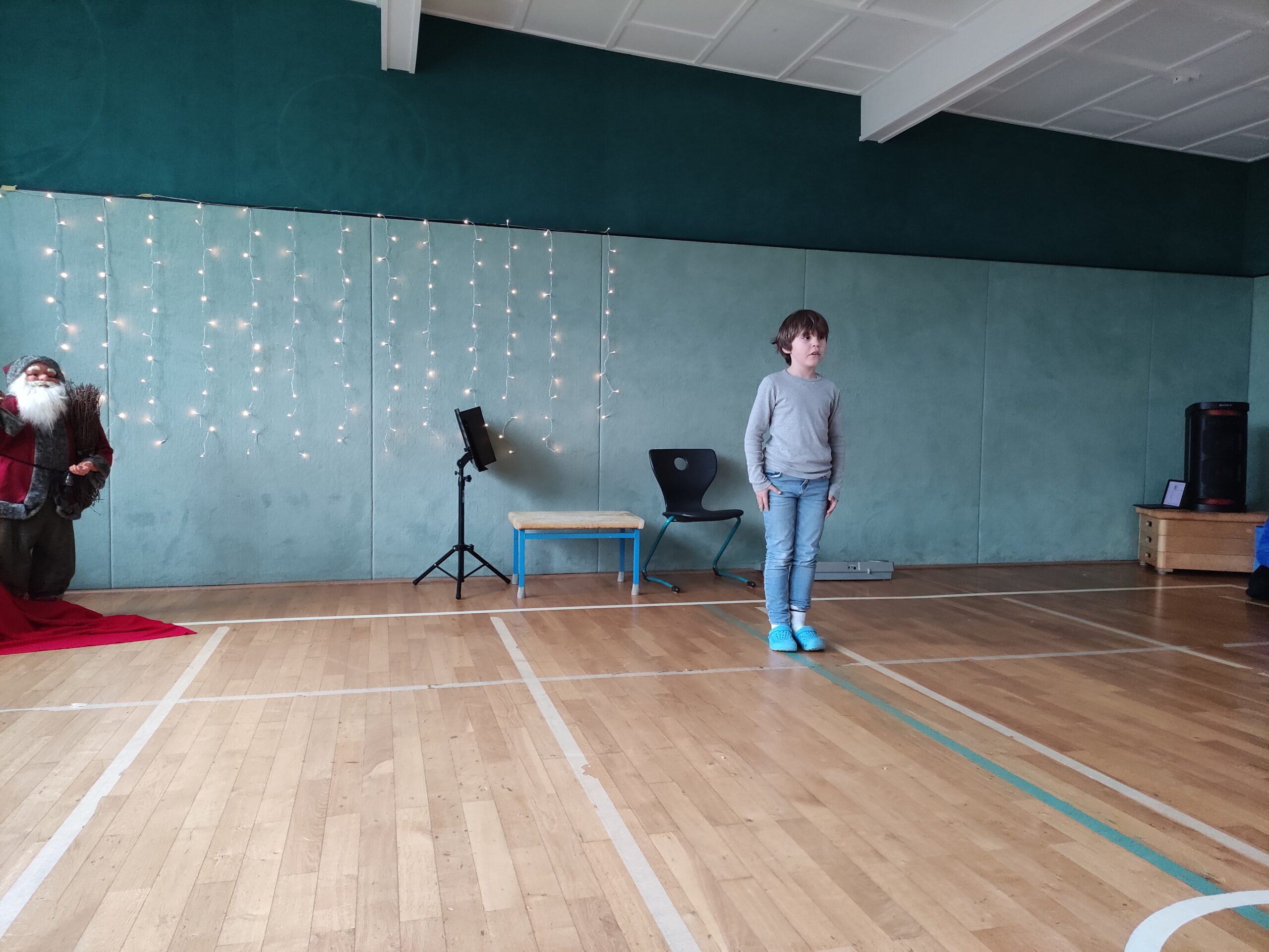 Die Klasse 1 und 2 singen Weihnachtslieder.