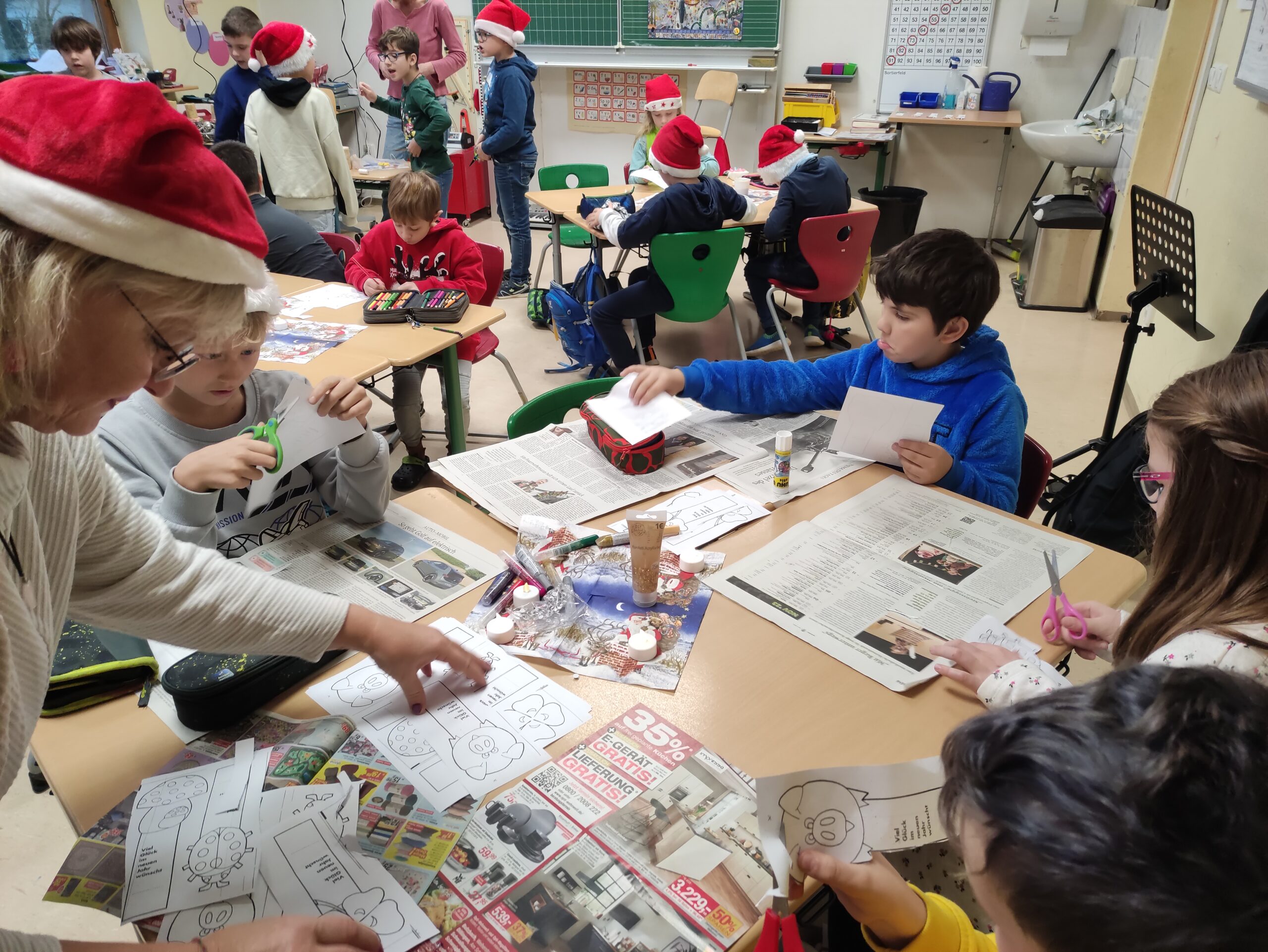 Bastelstationen in der Klasse 2